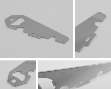 PAINT CAN OPENER NO. 7299-E back back forward forward Measure / Material: approx. 11,7 cm,  stainless steel Functions: paint can opener, 3 different  openers for paint cans, square, 10 mm &  13 mm wrench, ruler with cm or inch,  bottle opener  MADE IN SOLINGEN/GERMANY Contact Legal Notice Privacy Policy DUISBERG production DE
